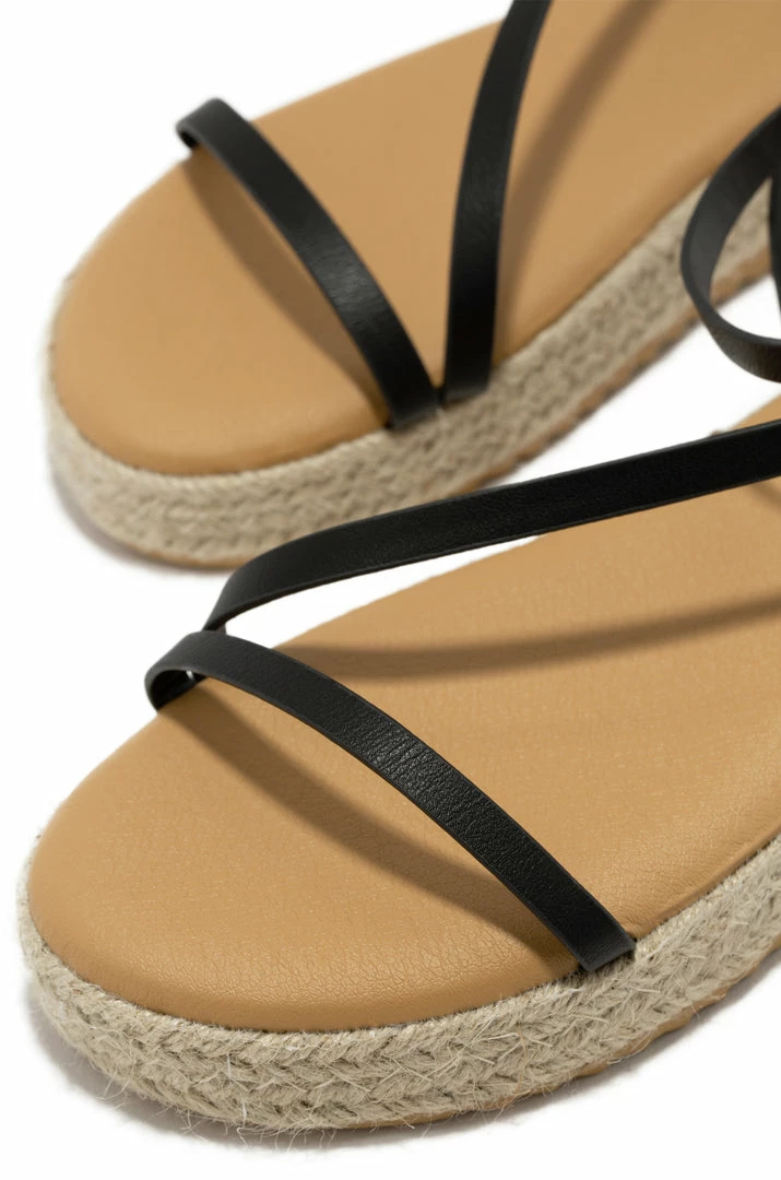- Black Lace Up Buckle Sandals