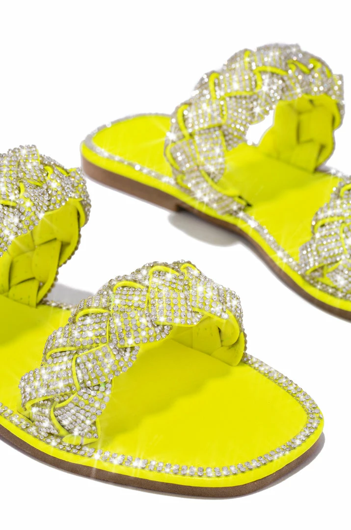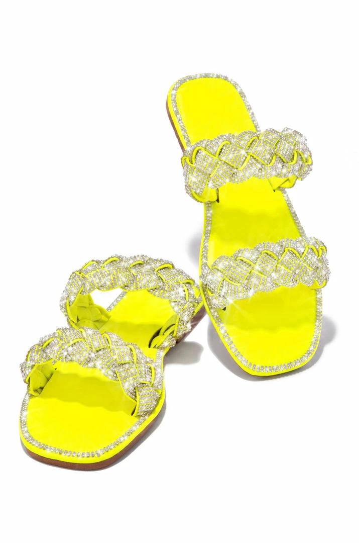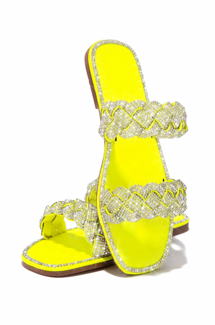 - Yellow Embellished Slip-On Flat SandalsÂ