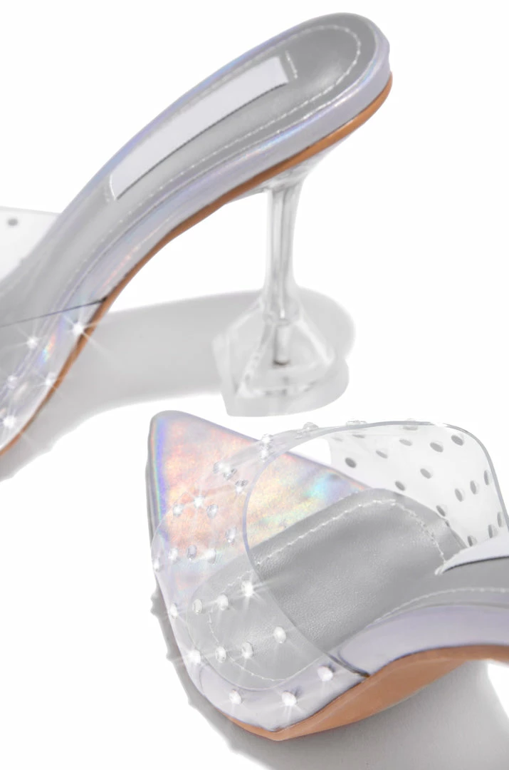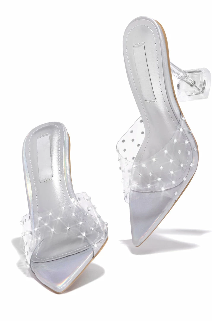 - Silver Clear Embellished Single Sole MuleÂ