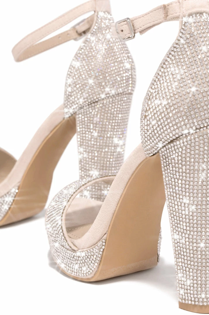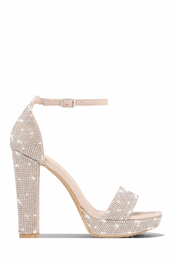 - Nude Embellished Platform Block Heels