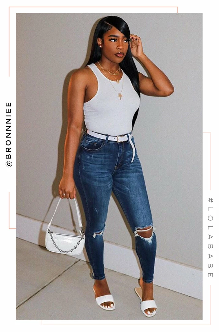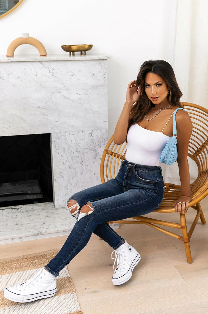- High Rise Ankle Skinny Jean