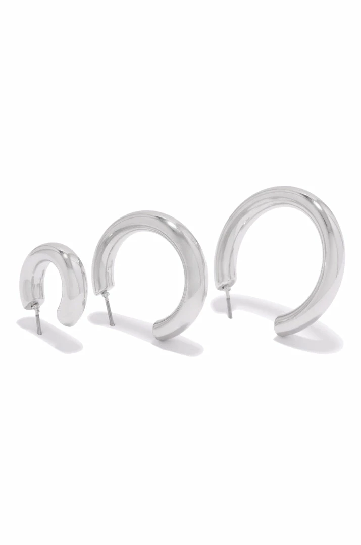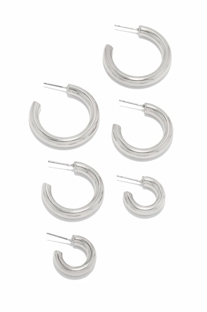 - 3 Set Of Silver Tone Hoop EarringsÂ