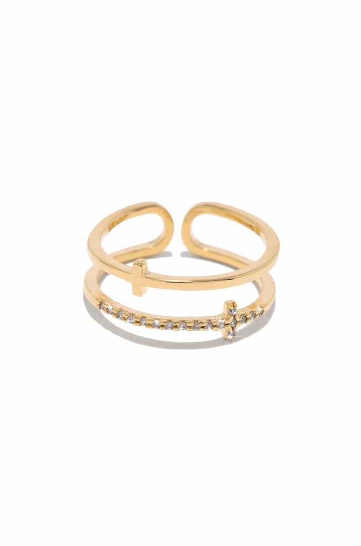 - Gold Adjustable Cross Ring