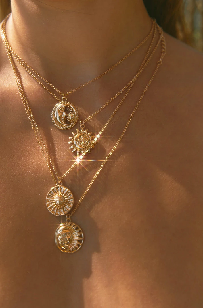 - Moon and Sun Pendant Measurements: 17″ – 20″
