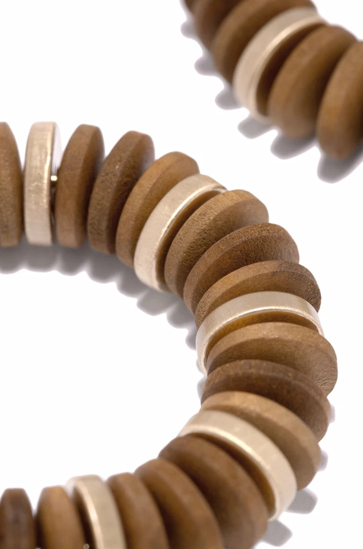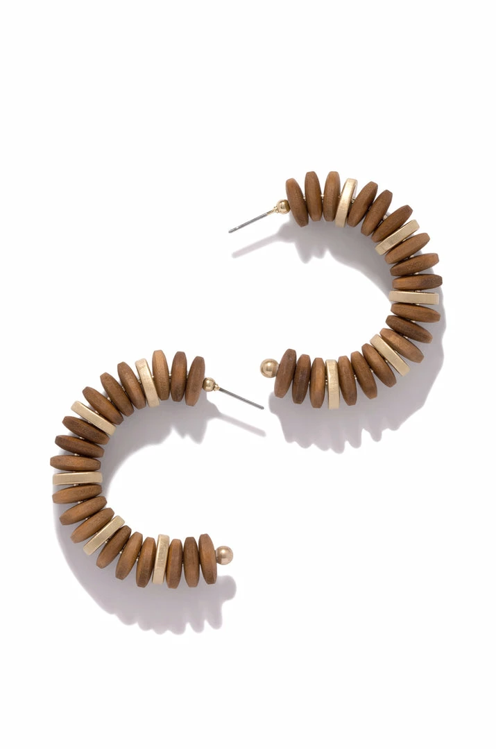 - Brown Wood Beaded Earring – color placement varies