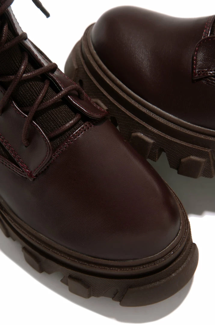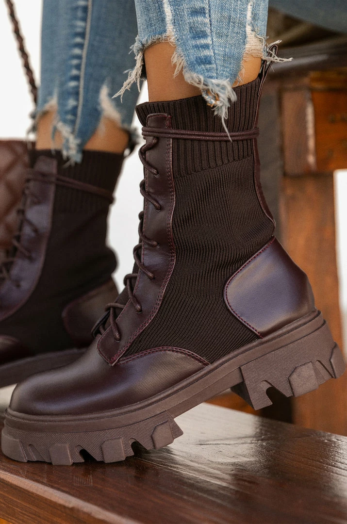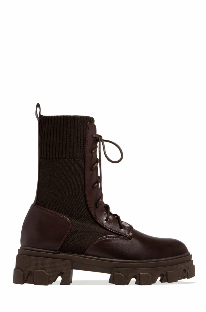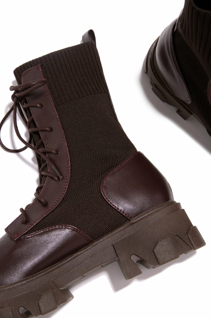 - Mocha Stretch Knit Ankle Combat Boot