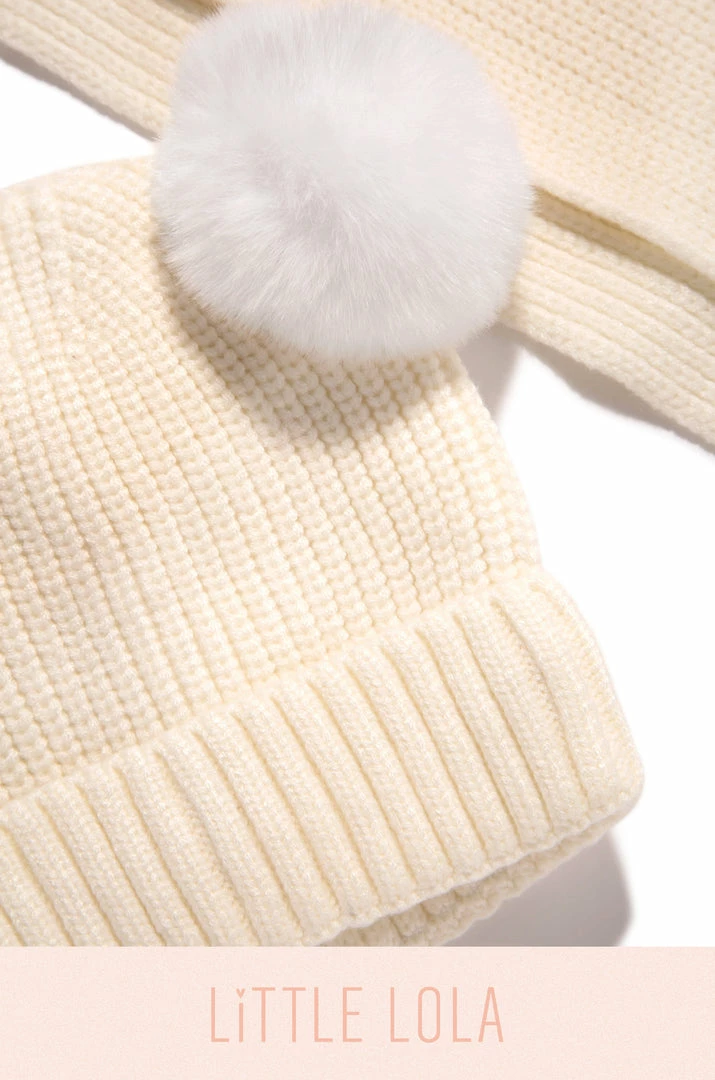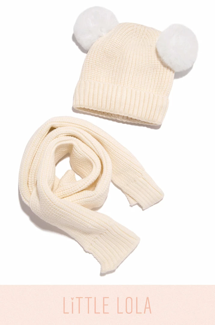 - Ivory Knit Little Lola Beanie and Scarf Set