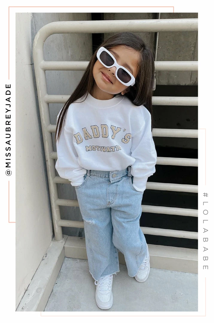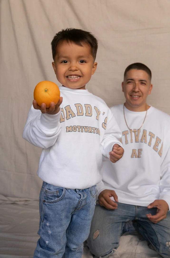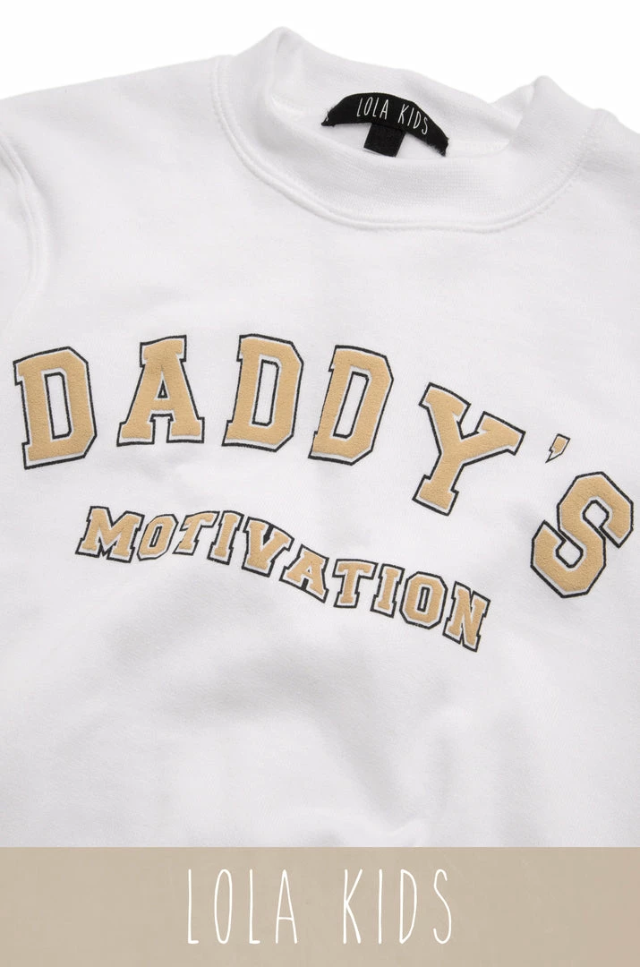 - available in additional colors:Â DADDY’S MOTIVATION VARSITY KIDS CREWNECK SWEATSHIRT