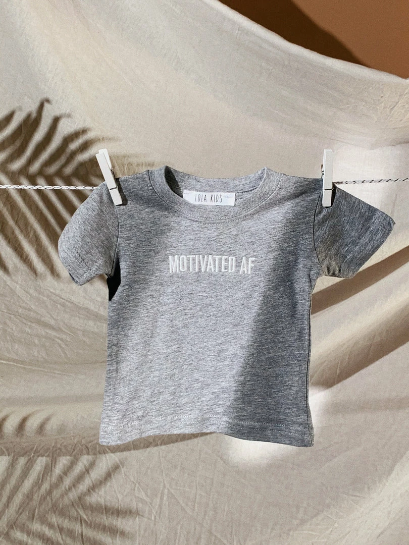 LOLAKID Tops Motivated AF Kids Tee – Grey