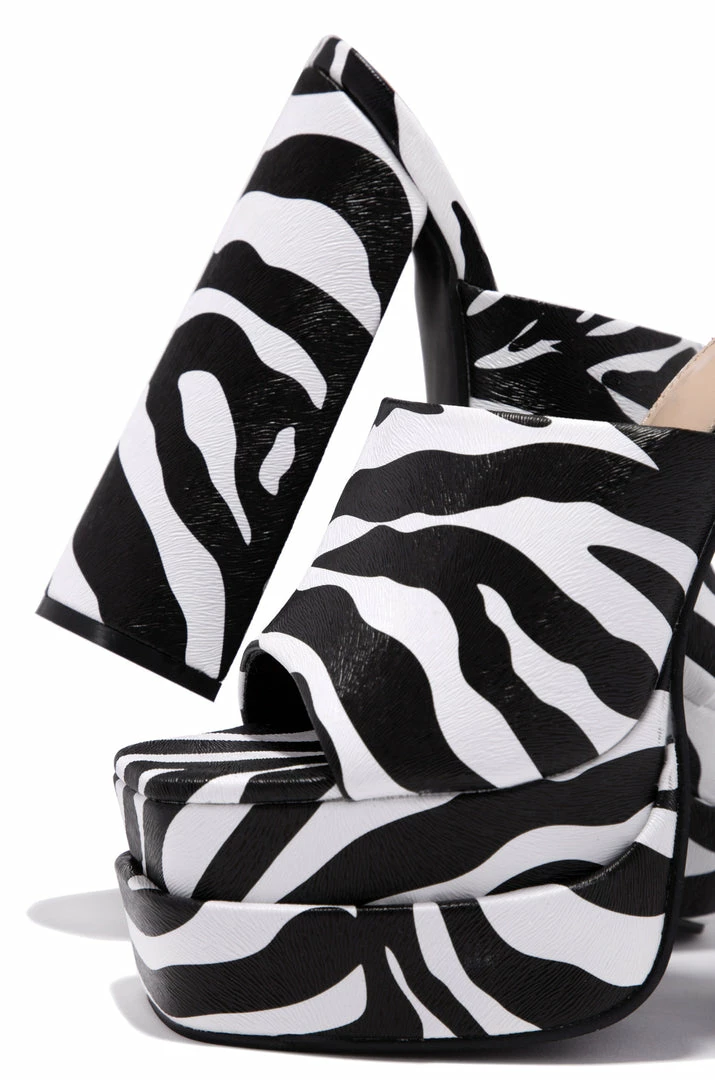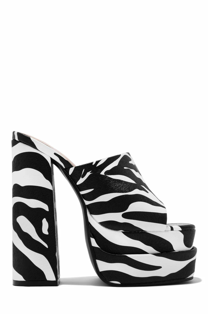 - Zebra Print Platform Block Heel Mules