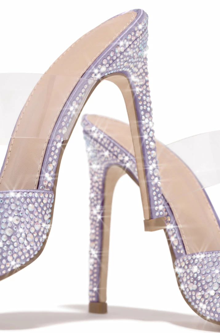 - Lilac Embellished Slip On Mule Pumps – color placement varies