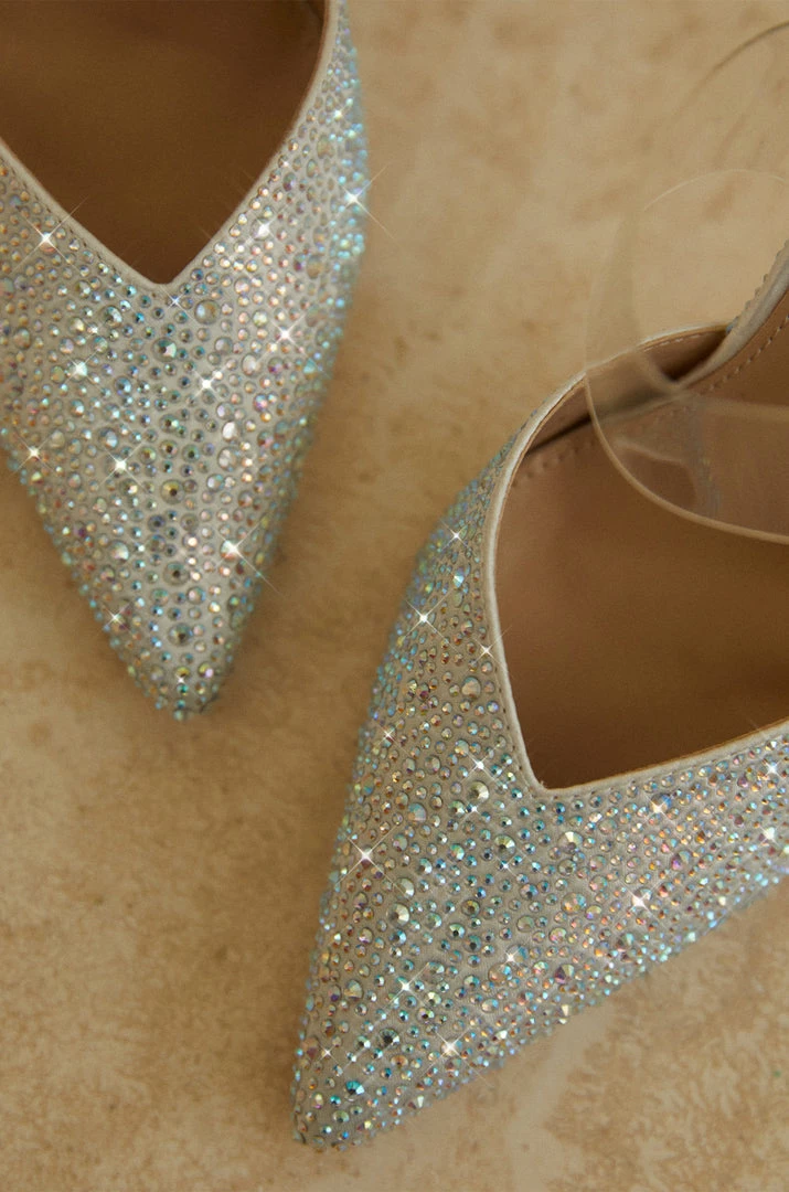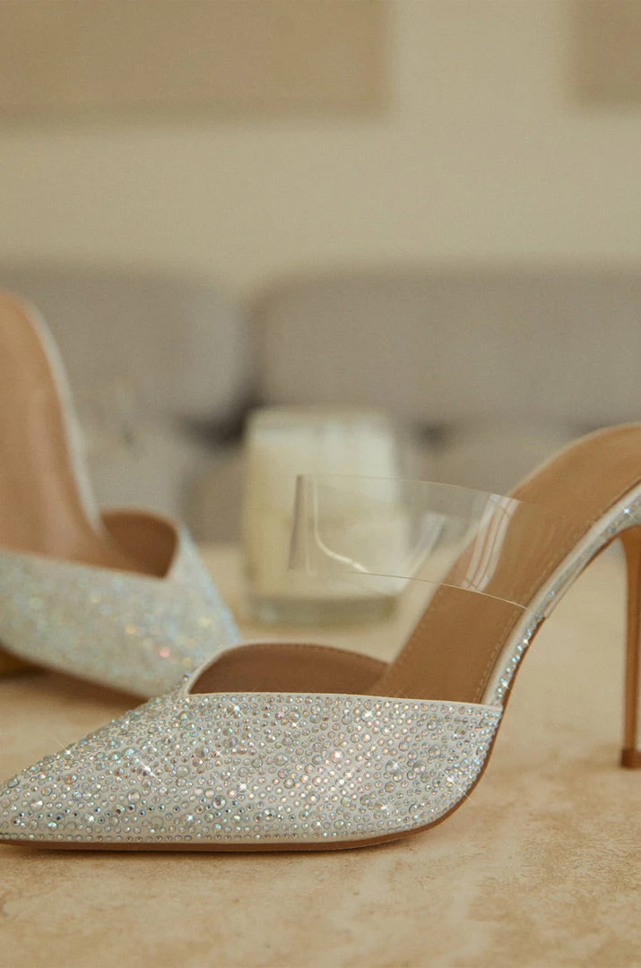 - Silver Embellished Slip On Mule Pumps – color placement varies