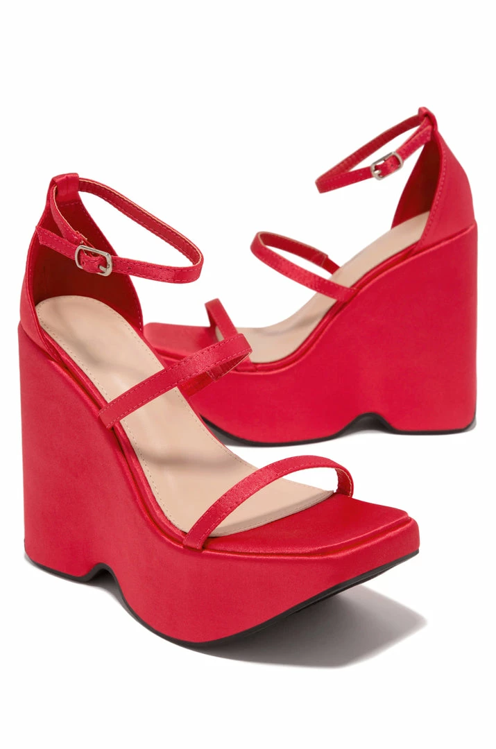 - Red Faux Satin Wedges