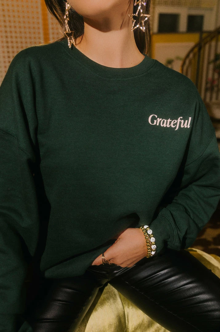 - Front GRATEFUL Screen Print on Upper Left Chest