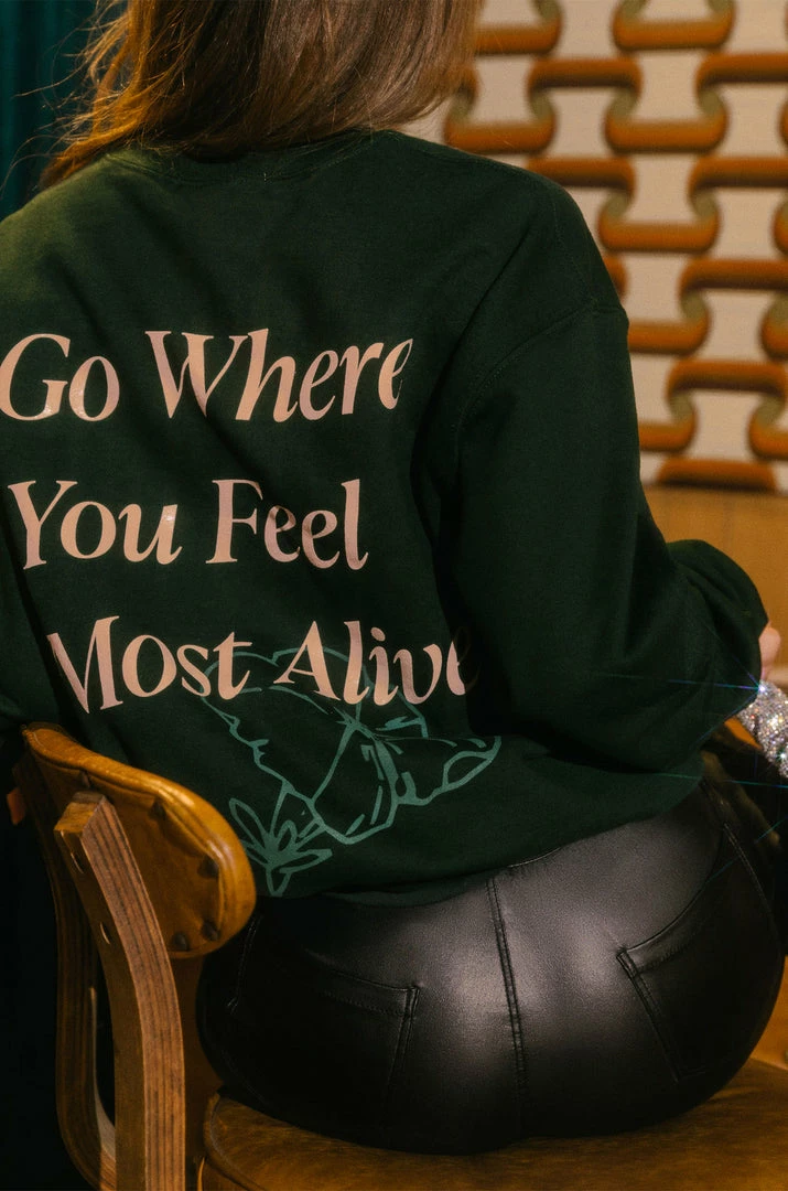 - Back GO WHERE YOU FEEL MOST ALIVE Screen Print on Center Back