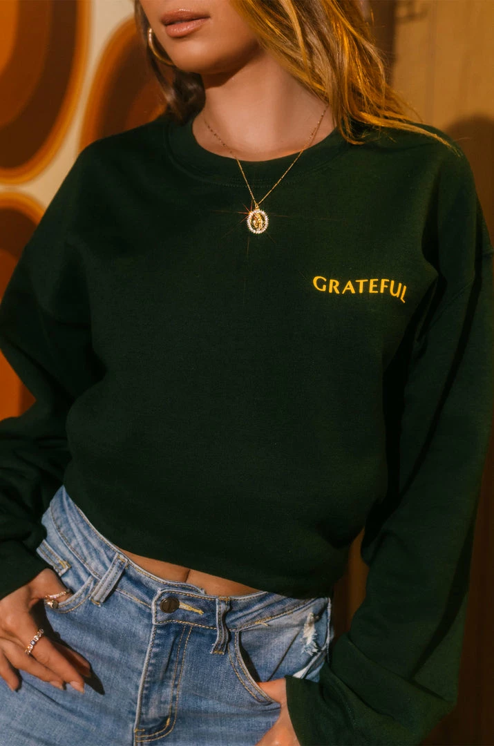 - Front GRATEFUL Screen Print on Upper Left Chest