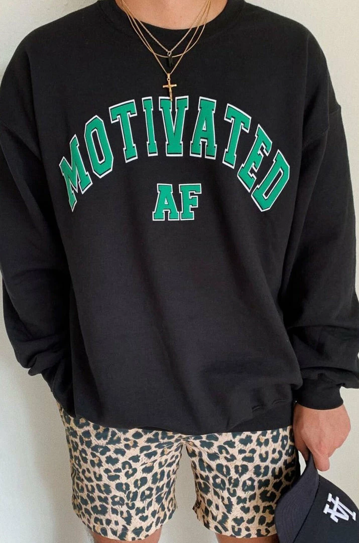 - available in additional colors: MOTIVATED AF VARSITY CREWNECK