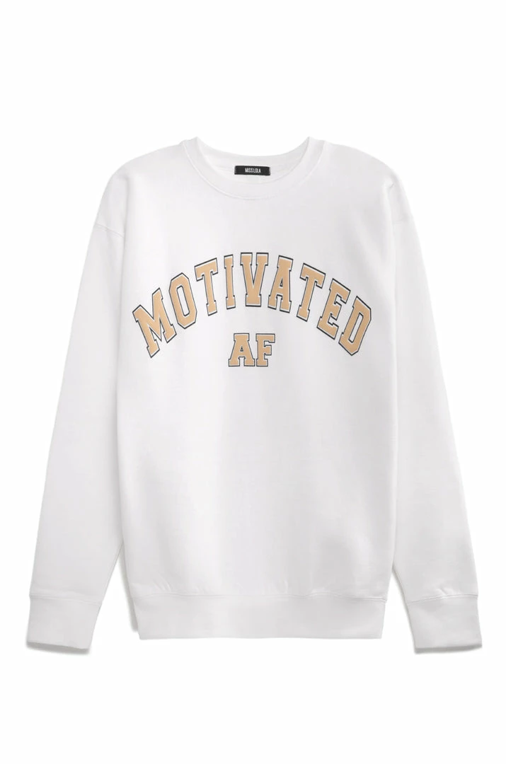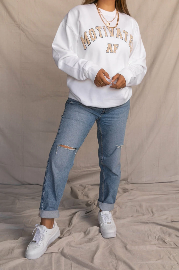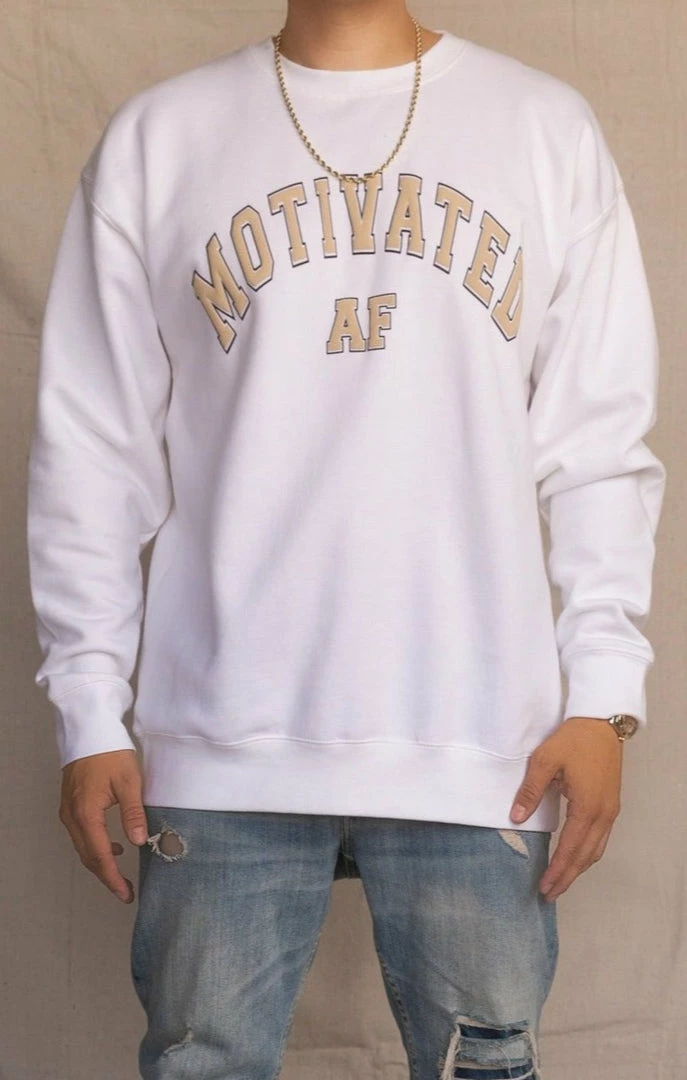 - available in additional colors:Â MOTIVATED AF VARSITY CREWNECK