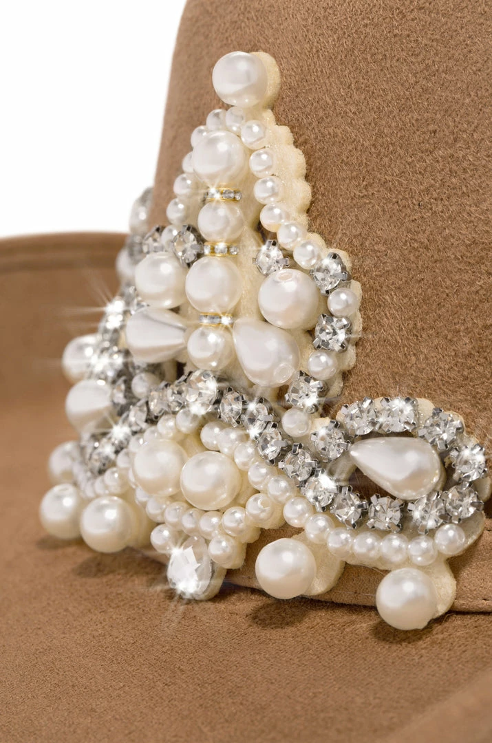 - Intricate Faux Pearl and Stone Detailing – Each Hat Is Uniquely Its Own Due To The Item Being Hand Made