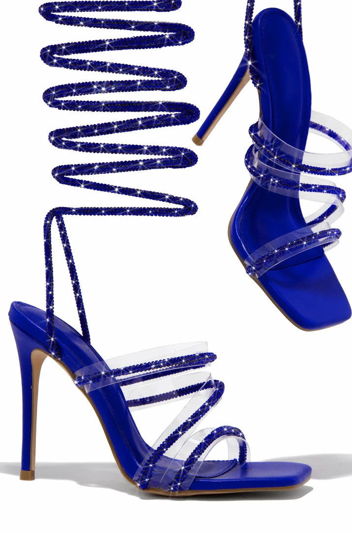- Blue Embellished Lace Up High Heels