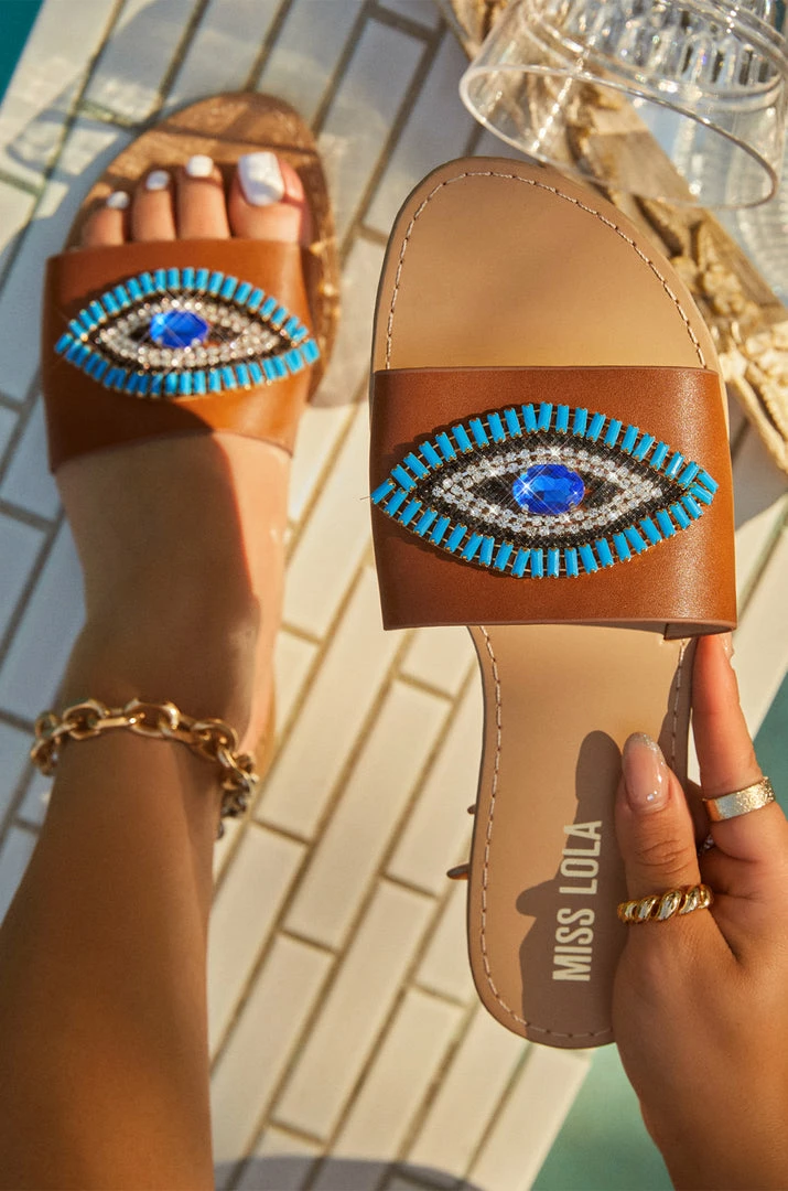 - Tan Evil eye Sandals
