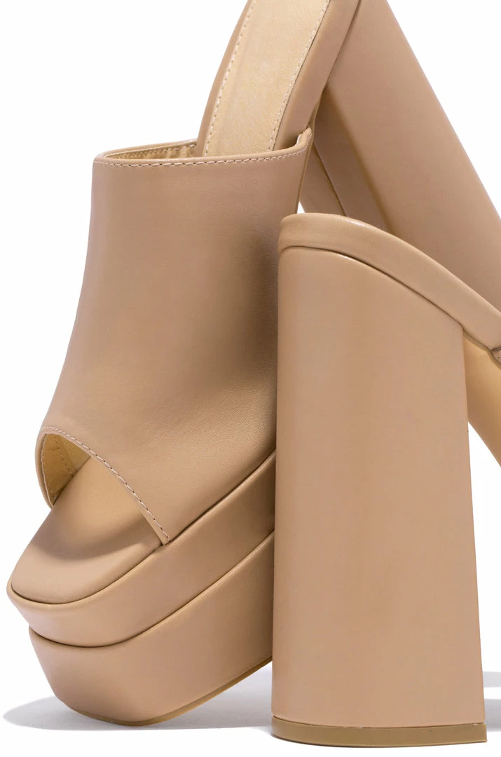 - Nude Platform Block Heel Mules