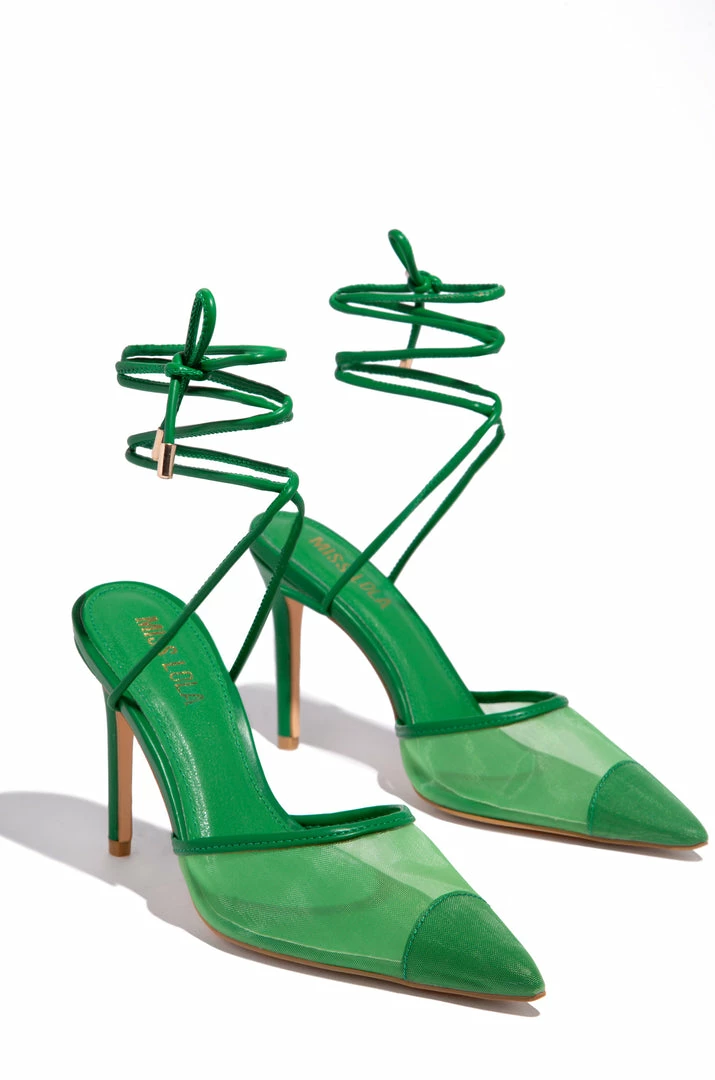 - Green Lace Up Pump Heels