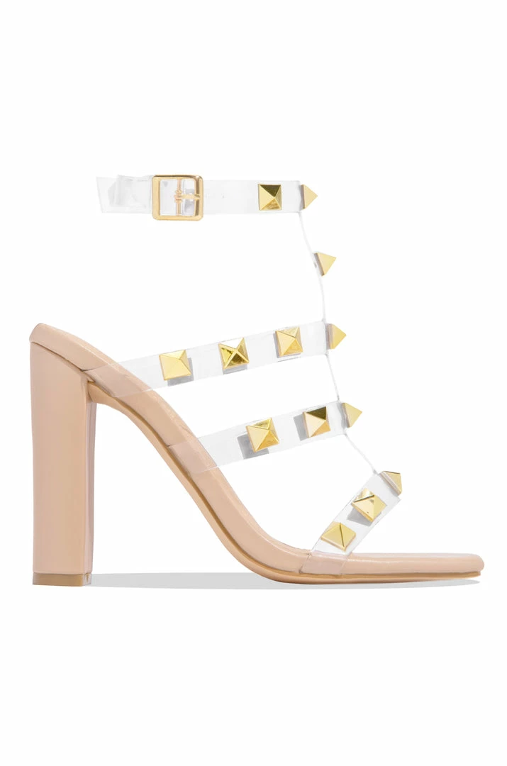 - Clear Strap(s) with Gold-Tone Pyramid Stud Detailing