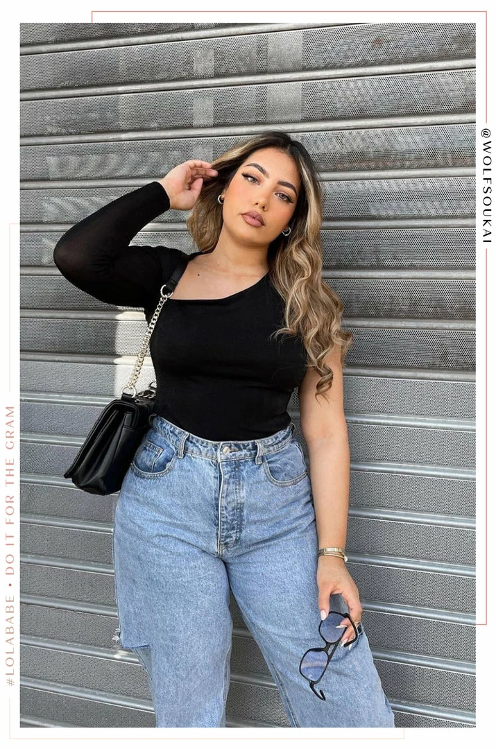 - Asymmetrical Long Sleeve Bodysuit