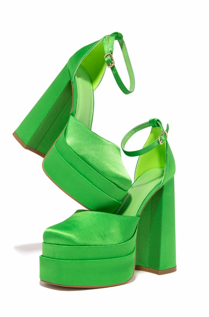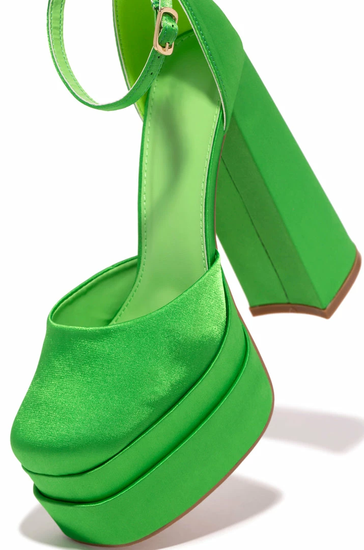 - Green Faux Satin Platform Heel