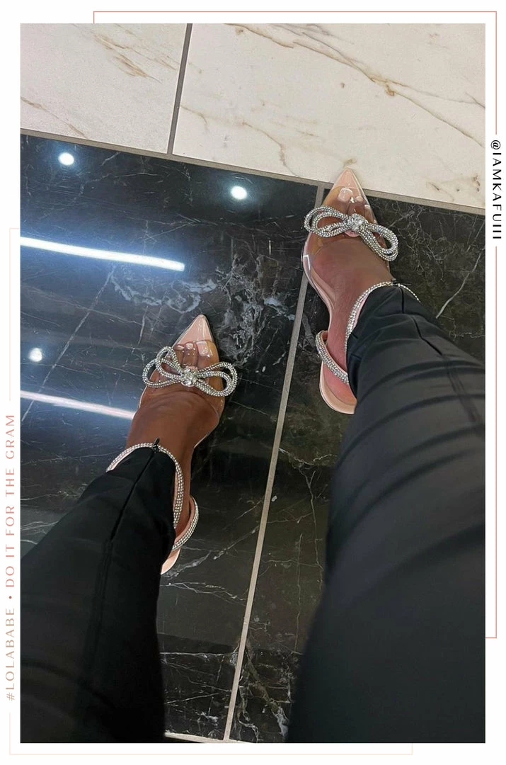 - Clear Nude Embellished Single Sole Pump