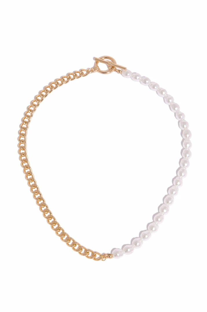 - Half Faux-Pearl Stones and Half Gold-Tone Chain