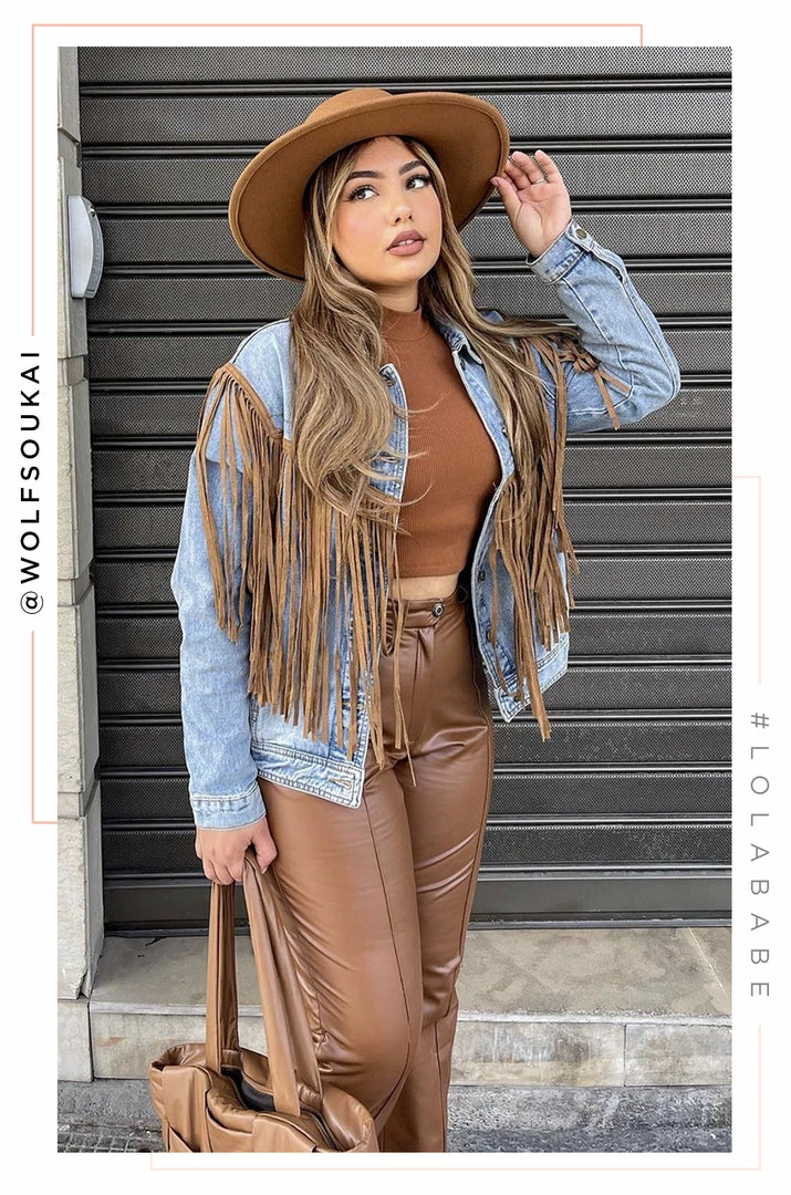 - Denim with Faux Suede Trim