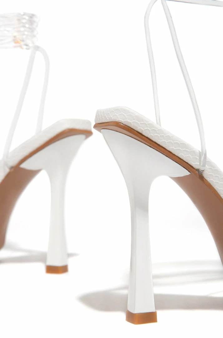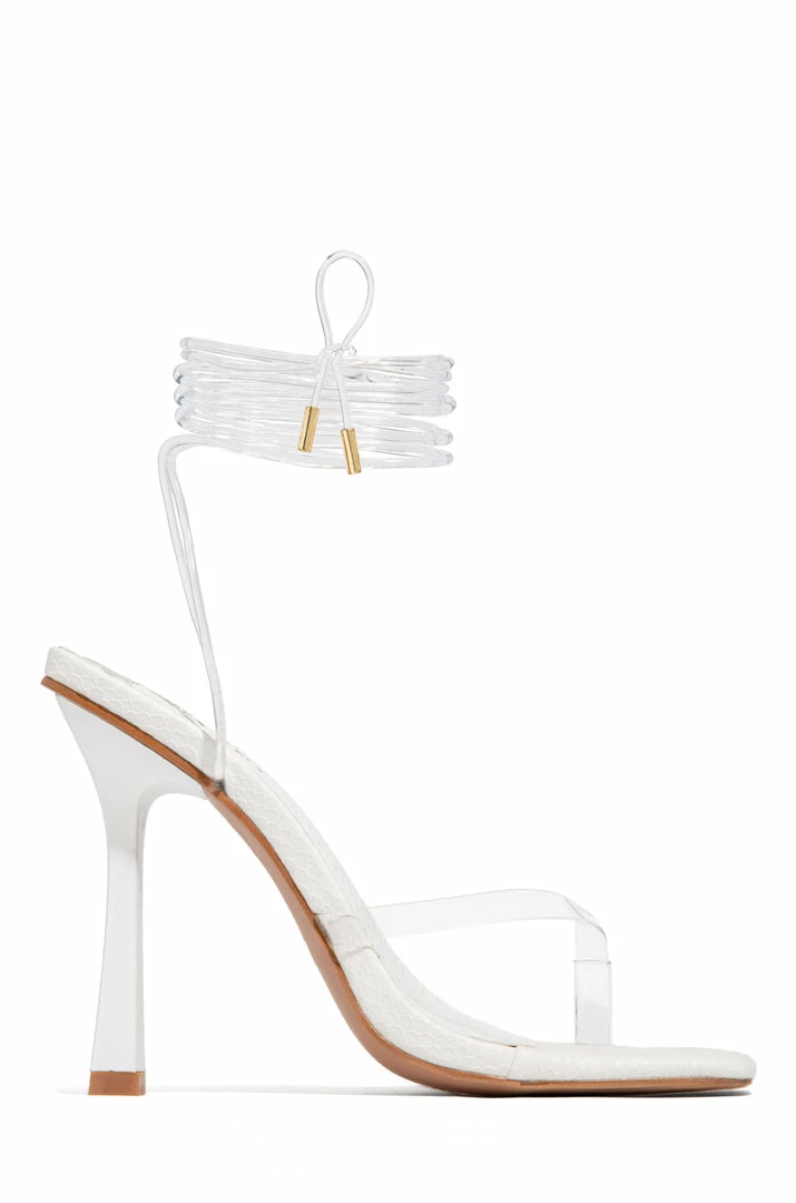 - White Lace Up High Heels
