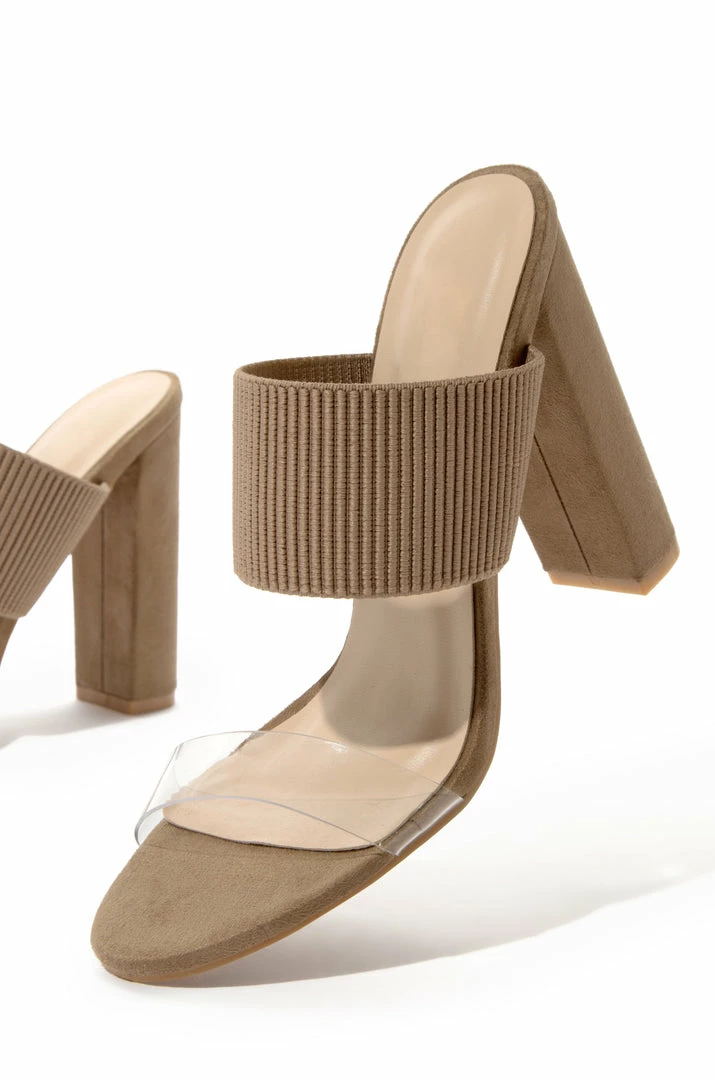 - Taupe Block Heel Mules
