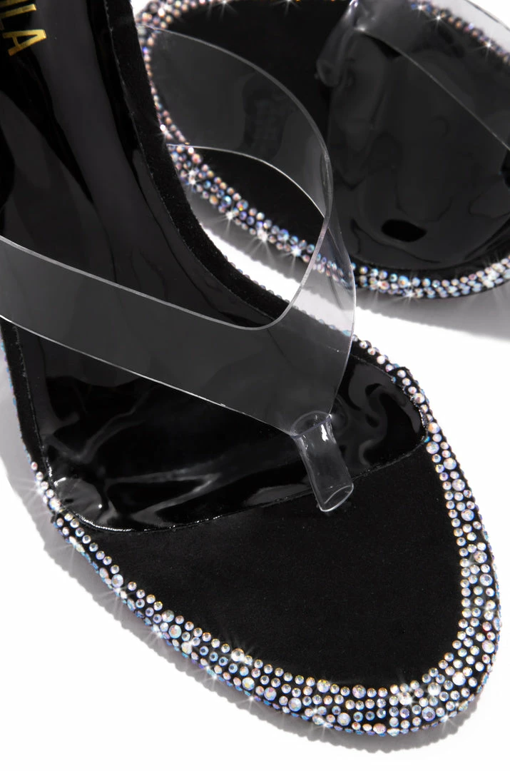 - available in additional colors:Â KIMMY CLEAR STRAP HEELS
