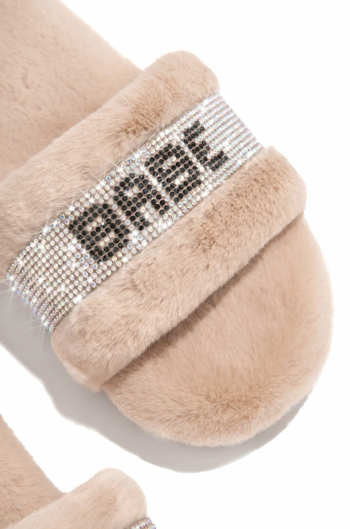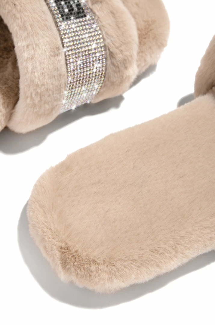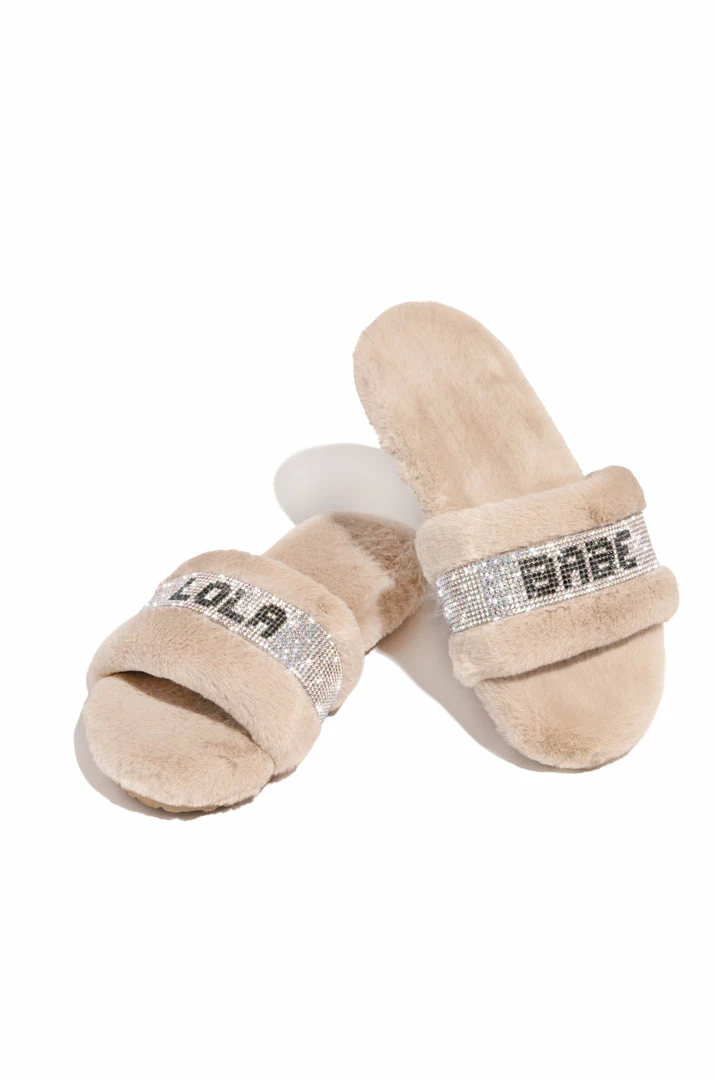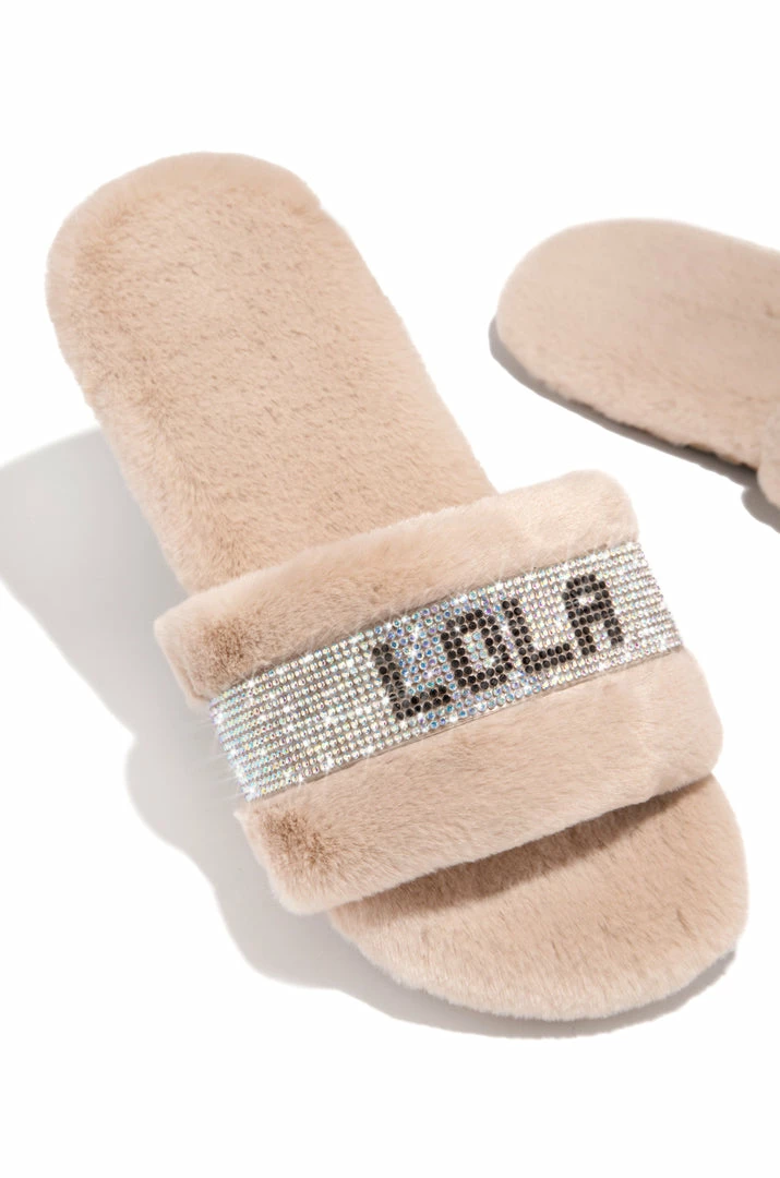 - Nude Faux-Fur Slide