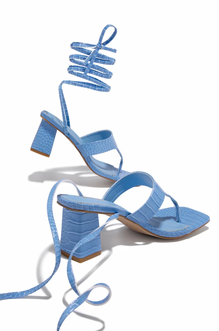 - Light Blue Lace Up Block Heels