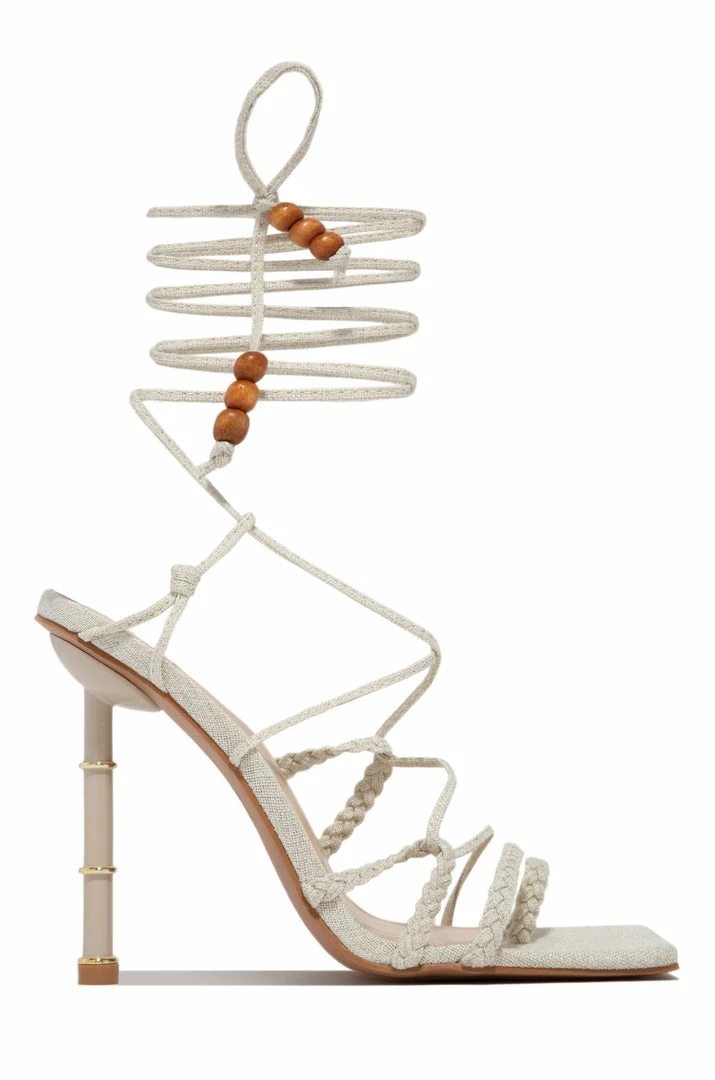 - Bone Linen Lace Up High Heels