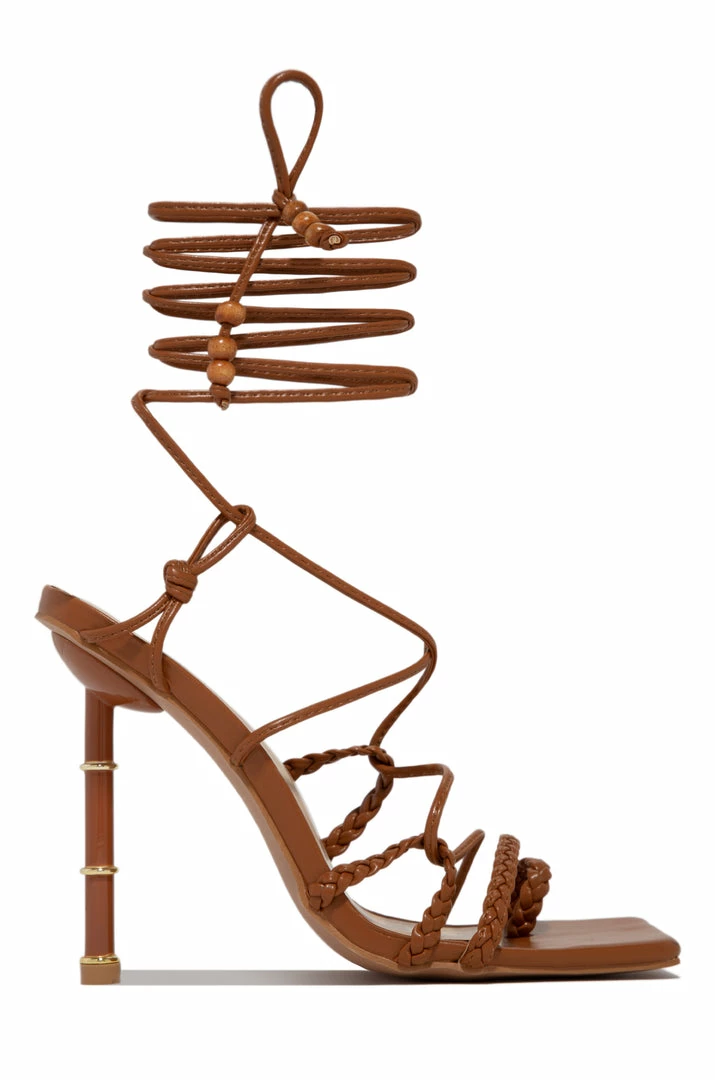 - Tan PUÂ Lace Up High Heels