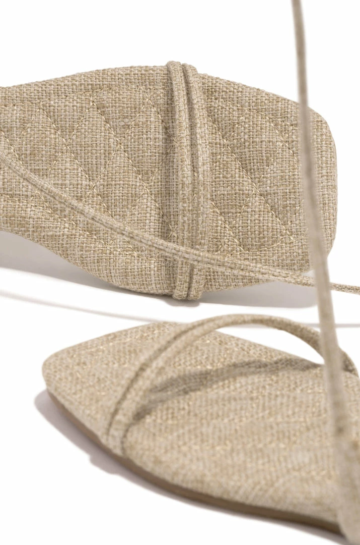 - Natural Flat Lace Up Sandals