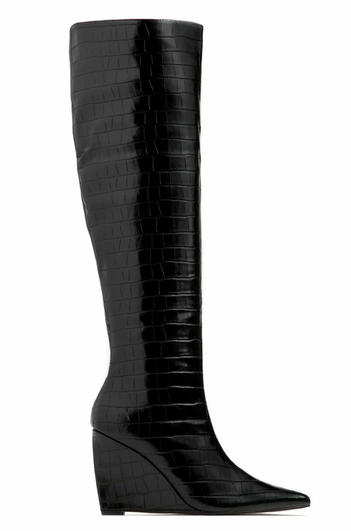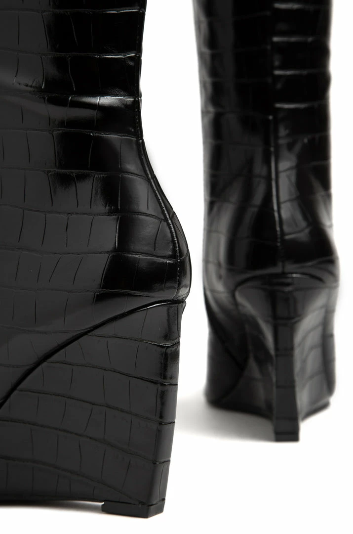 - Black Croc Wedge Heel Boot