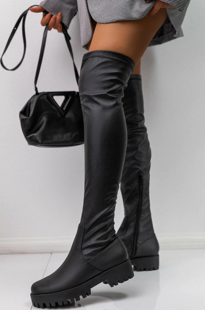 - Black PU Over The Knee Boot